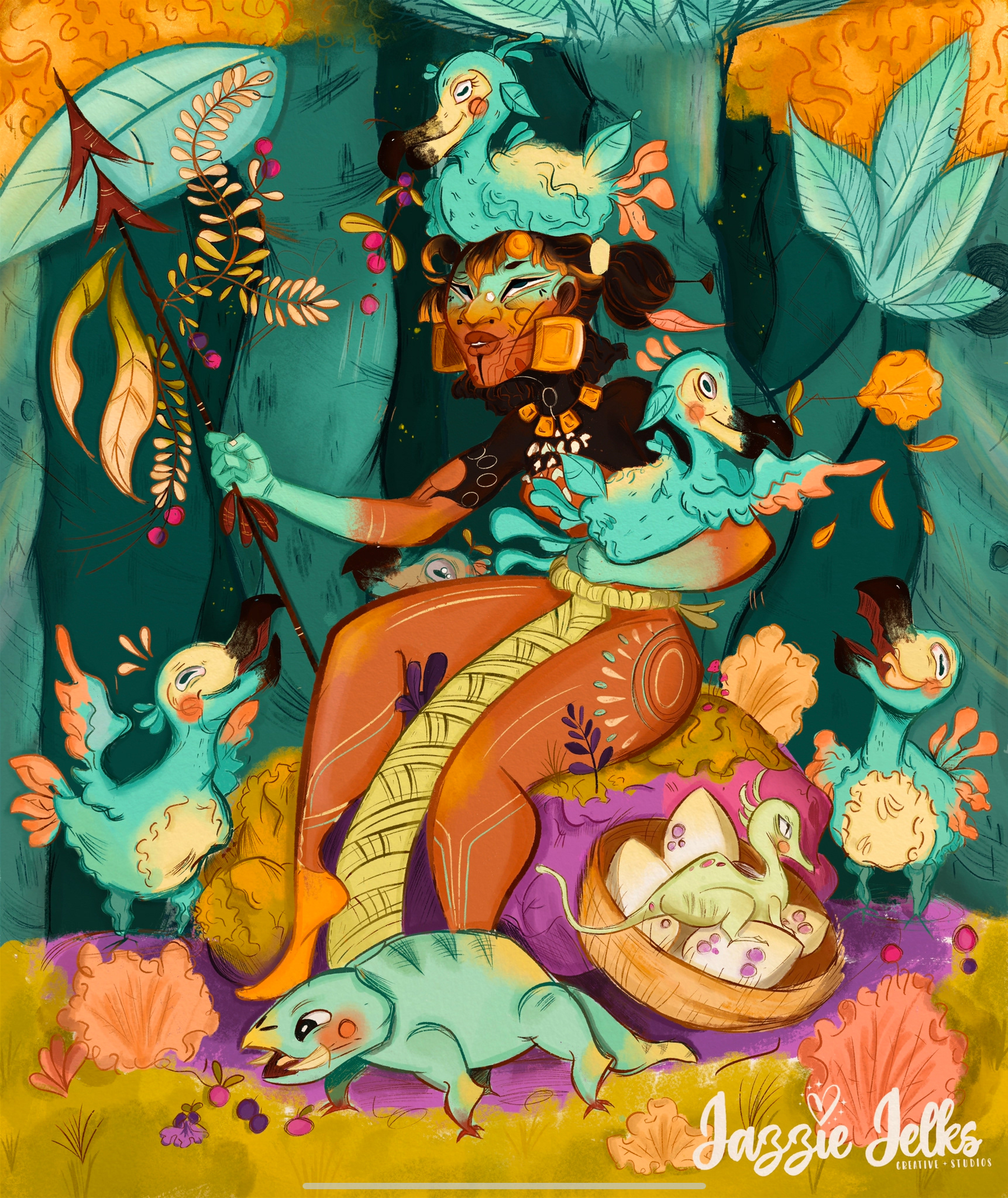 An independent illustration conceptualizing a soon-to-be-released children's book written and illustrated by Jazzie Jelks; A celebration of Black American style and beauty illustrated in a warm, inviting, Fall inspired piece. This digital illustration creates a colorful, imaginative representation of a young Black woman proudly embracing her culture. I hope that it will serve as an inspiration and source of joy for all who experience it.
